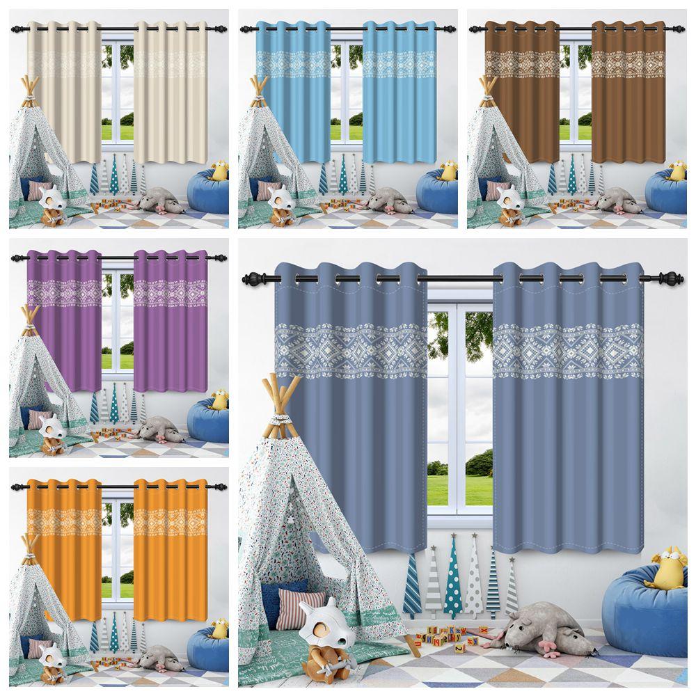 2Pcs Simple Print Solid Color Blackout Curtains Grey Brown Blue Thermal Insulated Grommet Window Drapes for Bedroom Living Room