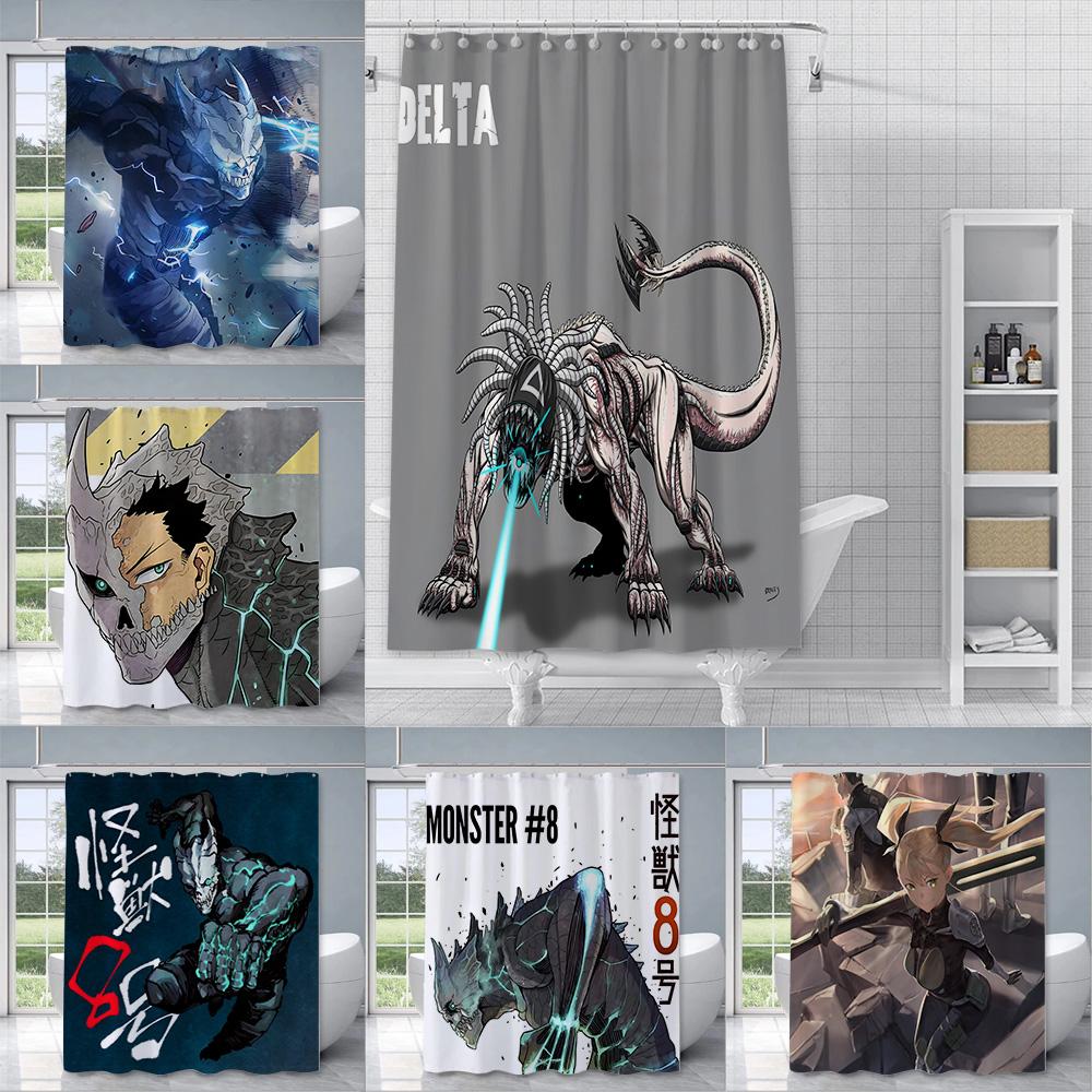 Japan Comics Kaiju No.8 Shower Curtain Waterproof Polyester Fabric Paint Bath Curtains Home Bathroom Decor Curtain Hook