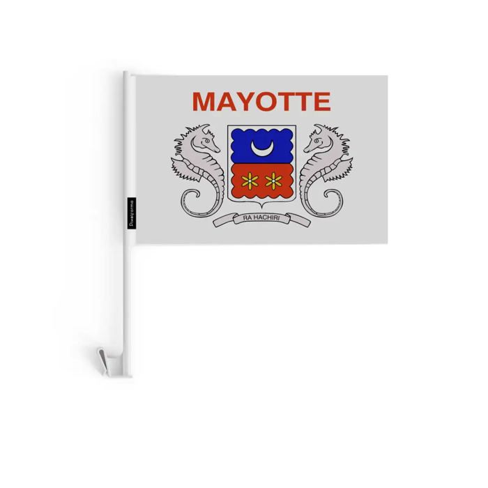 Mayotte Car Flag – 14 X 21 Cm – Polyester Fabric – Window Mount – 10 Pieces – Pixelforma
