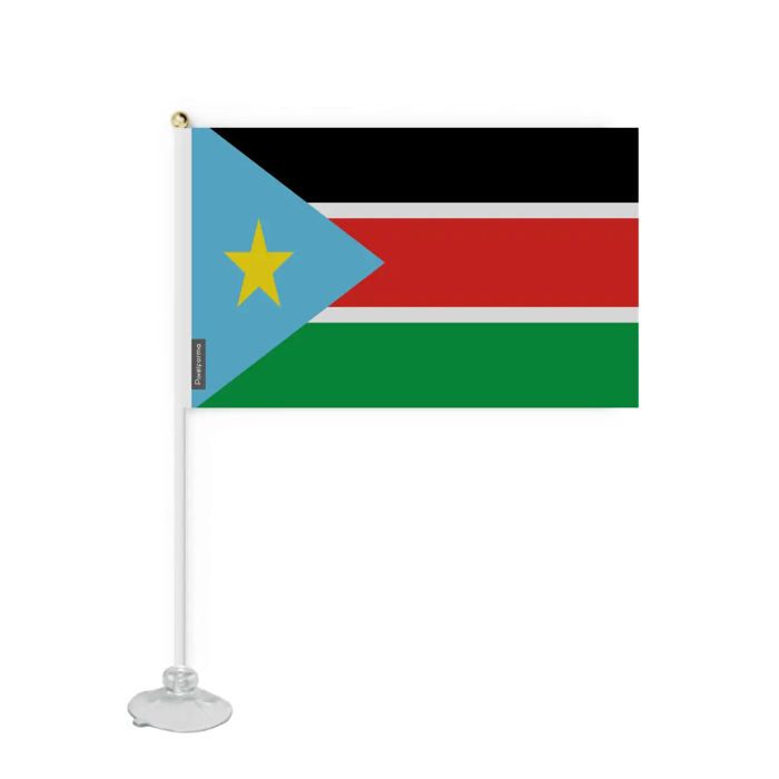 Mini Flag of South Sudan – Suction Cup – 14 X 21 Cm – For Smooth Surface – Polyester – 1 Piece – Pixelforma