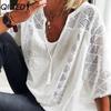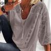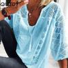 QICED Women's Fashion Casual Solid Color Print V Neck Blouses & Shirts
