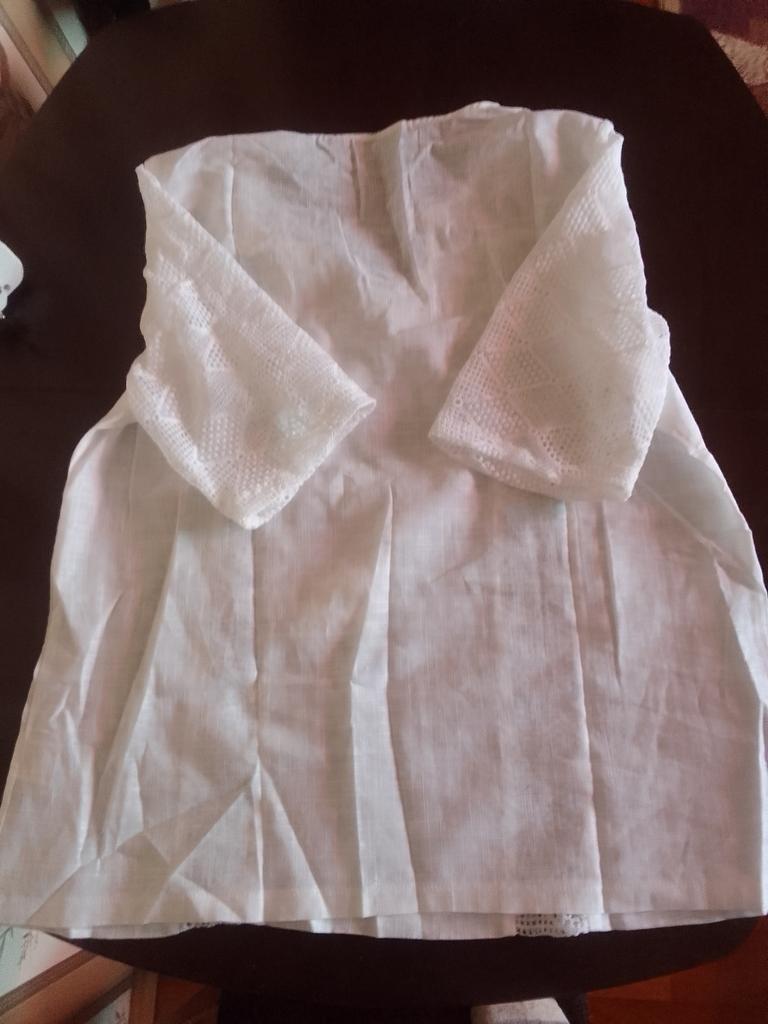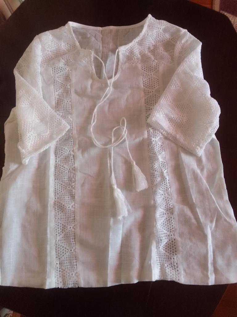 The blouse arrived 2 sizes too small and a completely different style, with short sleeves, and has holes in the seams.