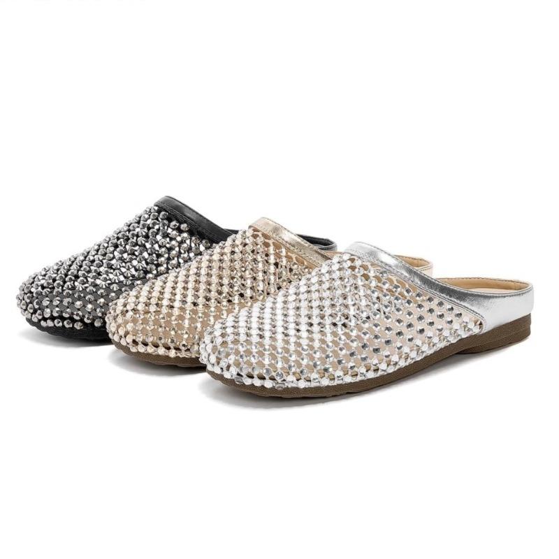 Rhinestone Slip Lazy Baotou Half Slippers Women Summer Outside Fashion New Soft Sole Non-slip Flat Slippers