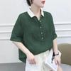 Casual Solid Color Peter Pan Collar Shirt Summer Stylish Pleated Female Streetwear Button Loose Spliced Short Sleeve Blouse