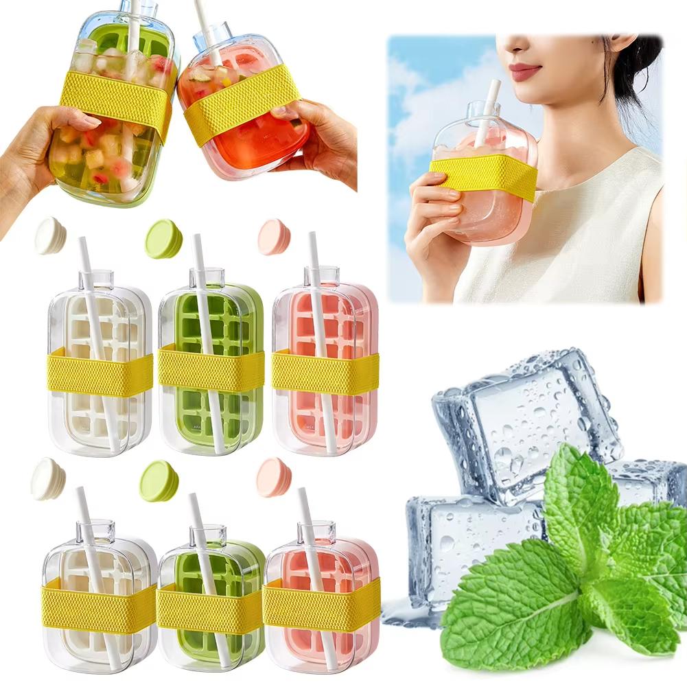 500/800ml 2in1 Ice Cube Tray with Water Bottle Press Type Portable Ice Maker High Capacity Ice Mold for Home Kitchen Summer Use