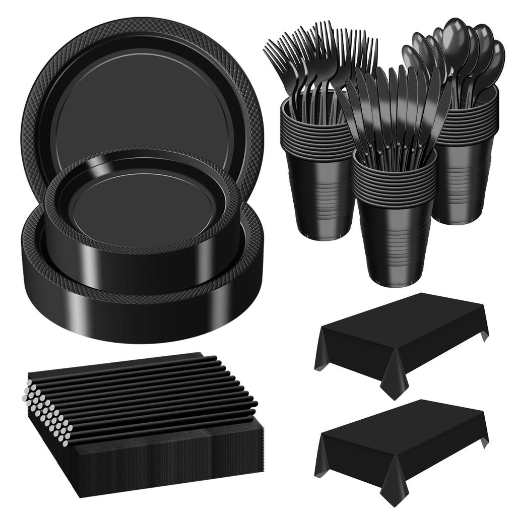 Disposable Plastic Plate Set, Solid Color Party Tableware, Birthday Decoration Plate And Cup Set.