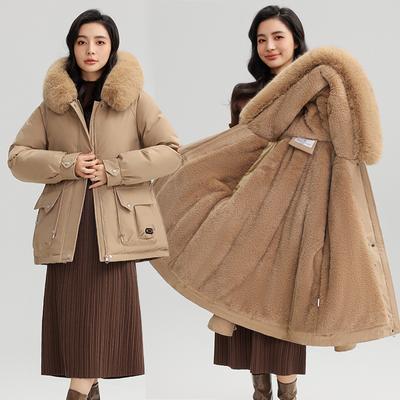 Women's Hooded Removable Lining Windproof Lightweight Thickened Fluffy Warm and Coldproof Mid-Length Casual Sports Jacket Parka Cotton Jacket