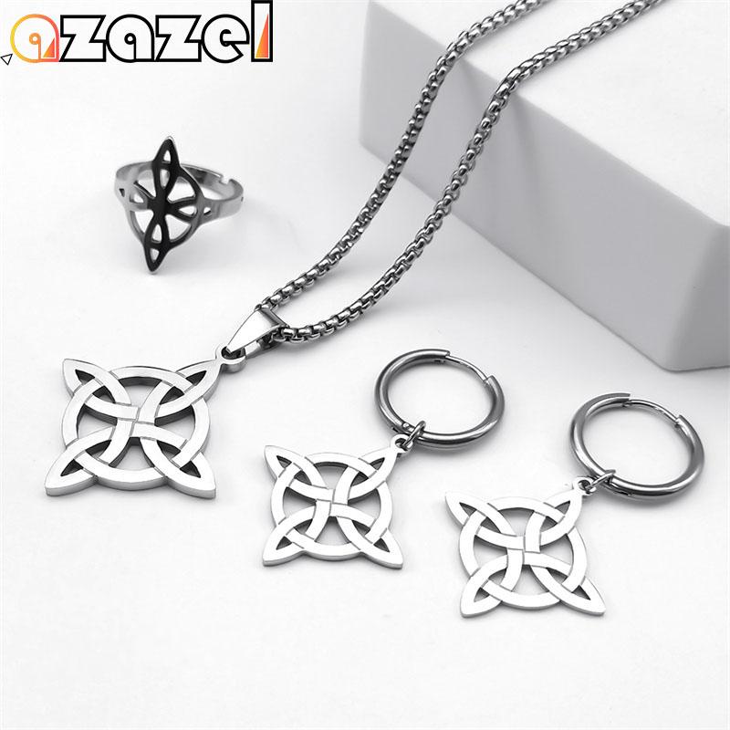 Stainless Steel Zircon Set Witch Irish Celtic Knot Wicca Pendant Necklaces for Women Men Earring Bracelet Ring Nudo De Bruja
