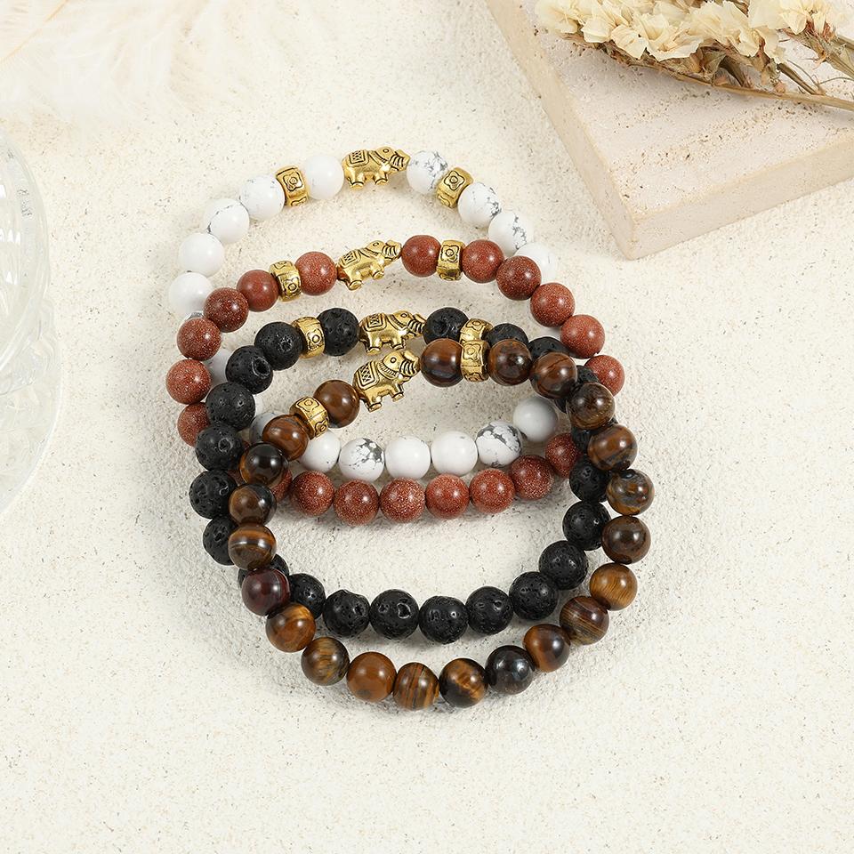 ZAKOL Natural Stone Elephant Knit Adjustable Beaded Bracelets For Men Women Metal Weave Strand Wristlet Rope Zircon Gifts Daily