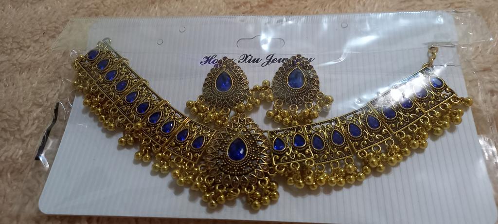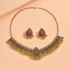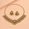 New Fashion Indian Bollywood Traditional Crystal Wedding Temple Choker Necklace Earrings Zircon Set