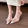 Fashion High-heeled Sandals Women's Summer Pointed-toed Stiletto Satin Rose High-end Heels Women