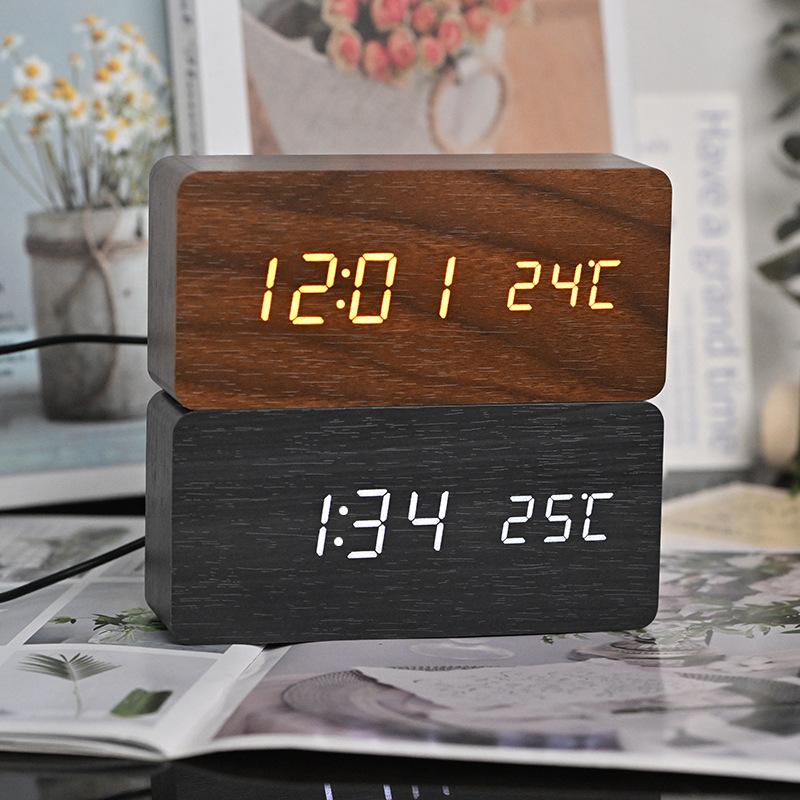Upgraded Charging Model PVC Wood Clock Digital Electronic Clock Sleep Alarm Clock Student Alarm Clock