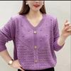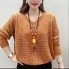 Spring Women's Knit V-Neck Loose Cover Hollow Sweater Versatile Style Long Sleeve Top