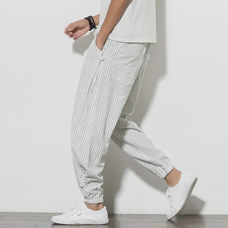 Discover the ultimate blend of comfort and style with these breathable cotton-linen harem pants. Perfect for the summer season, these pants feature a unique Chinese style with traditional frog button accents that add a touch of elegance. Made from high-quality cotton material, they offer a soft and lightweight feel, ensuring you stay cool and comfortable all day long. With their relaxed fit and cultural design, these pants are ideal for casual outings or adding a fashionable twist to your everyday wardrobe.