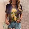 Summer Women's T-shirt Floral Print Casual Short-sleeved 3d T-shirt Fashion Streetwear V-neck Pullover