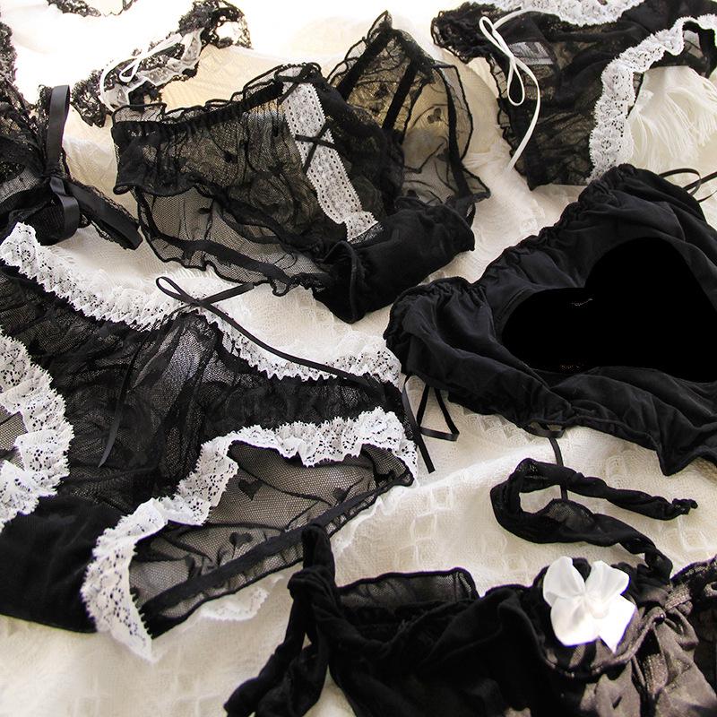 Black Women's Lace Mid-Waist Bow Mesh Panties - 620 Series