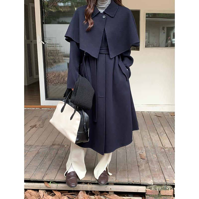 Casual Removable Cape Cashmere Coat Women's Single-breasted Warm Double-sided Hand-sewn Woolen Coat