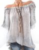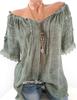 Elevate your summer wardrobe with this stylish women's off-shoulder top. Crafted from breathable cotton material, this top is perfect for warm-weather outings. It features a solid pattern that provides a clean and sophisticated look, while the short sleeves ensure comfort. The unique patchwork and quilted decoration add a touch of elegance and creativity, making it a versatile piece for both casual and semi-formal occasions.