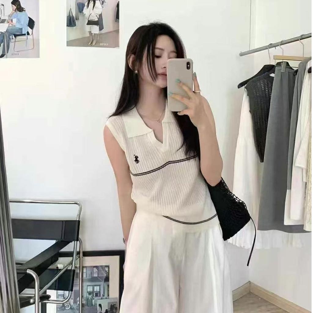 Embroidered V-neck Knitted Sleeveless Top Basic Women's Outerwear Vest Elegant Knitted T-shirt