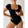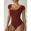2025 Short Sleeve Swimsuit Women One Piece Solid Swimwear Female Zipper Bathers Bathing Swimming Suit Summer Beachwear Bodysuit