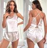 Experience comfort and style with this camisole and shorts set, designed for women who appreciate both elegance and ease. Perfect for spring and summer, this pajama set is crafted from silky smooth material, providing a luxurious feel against the skin. The sleeveless camisole offers a breezy and relaxed fit, while the matching shorts complete the ensemble, making it an ideal choice for warm, restful nights.