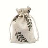 1pcs Leaf Printed Linen Bag Drawstring Gift Bag, Jewelry Packaging Bag Wedding Party Gift Bunch Bag, Birthday Party Gift Bag
