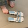 Summer Women's Square Toe Low Heels Slippers Concise Butterfly-knot Slides Party Wedding Candy Color Female Shoes