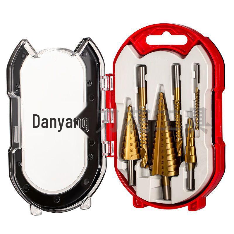 6-Piece Titanium Step Drill Bit Set for Woodworking and Grooving with Plastic Box
