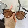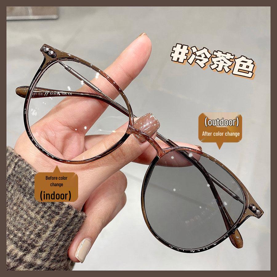 Korean Style Women's Color-Changing Myopia Glasses with Prescription, Anti-Blue Light, Tea-Colored Frames