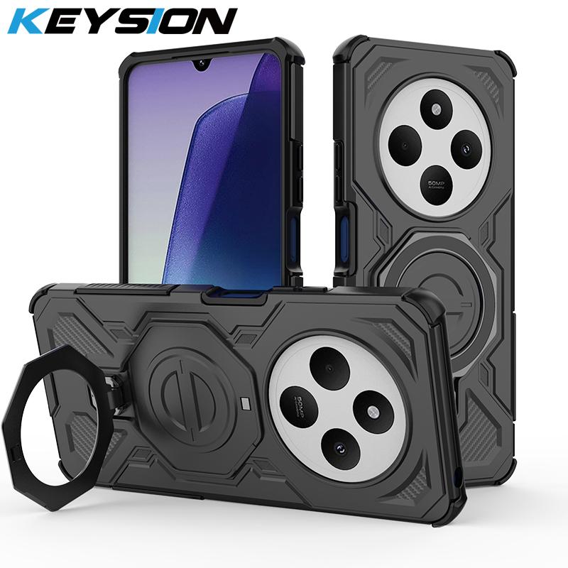 KEYSION Shockproof Magnetic Case for Redmi 14C Silicone+PC Upright Live Metal Ring Stand Phone Back Cover for Xiaomi POCO C75