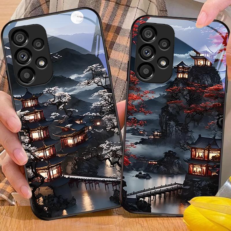 Old Style Building For Samsung Galaxy S 8 9 10 20 Plus 21 FE 22 23 24 Ultra S7 Edge Black Tempered Glass Phone Case Hard Shell