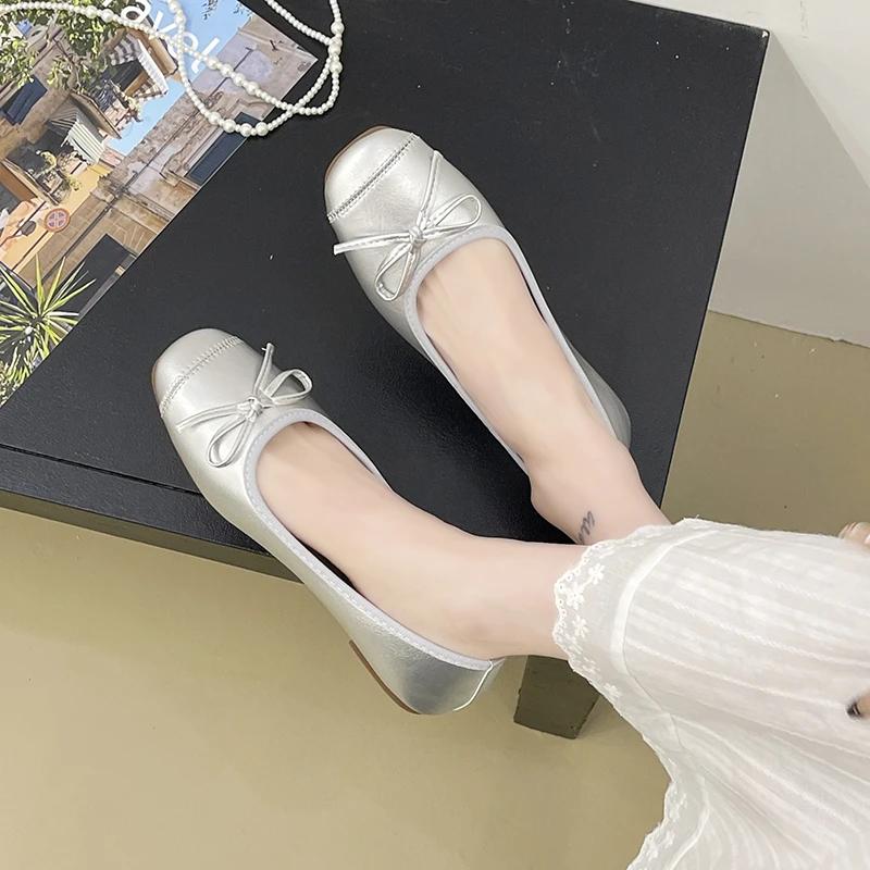 2025Suede Flat Shoes New Women's Soft and Fashionable Lightweight Shoes French Small Fragrance Bow Elegant and Comfortable Shoes