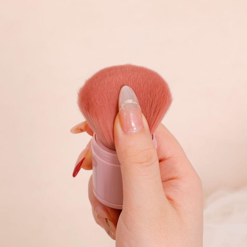 Large Retractable Powder Brush with Lid - Soft Bristles, Mushroom Head, Portable for Loose Powder and Blush.