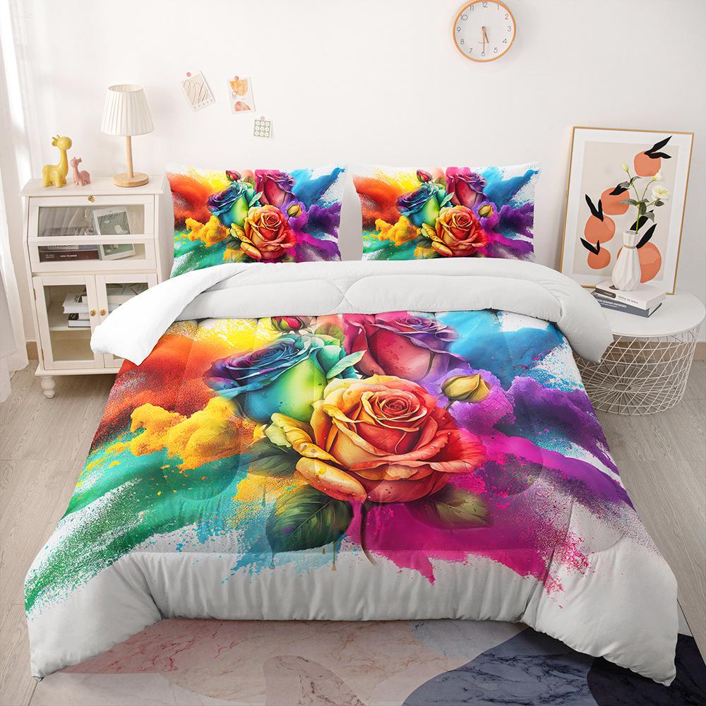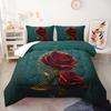3D Printing Red Rose Flower Duvet Cover Set,Comforter Cover Rose Flower Pattern Bedding Set, Colorful Polyester Quilt Cover Set