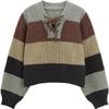 Versatile Retro Striped V-neck Sweater Short Women's Loose Niche Contrasting Color High-end Lace-up Knitted Sweater