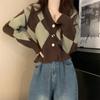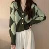 French Temperament Jacket Women's Spring and Autumn Design Sense Niche Casual Commuting Wind Green Rhombus V-neck Knitted Sweater