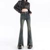 Neutral Burrs Slightly Pulled Jeans Women's Thin High Waist Spring and Autumn New Design Micro-flared Jeans