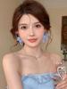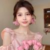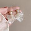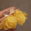 2025 White Chiffon Flower High-End Fairy Stud Earrings for Big Round Faces