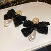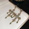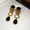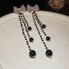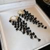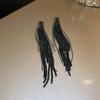 Vintage Silver Black Tassel Geometric Round Stud Earrings for Women - Elegant High-End Design