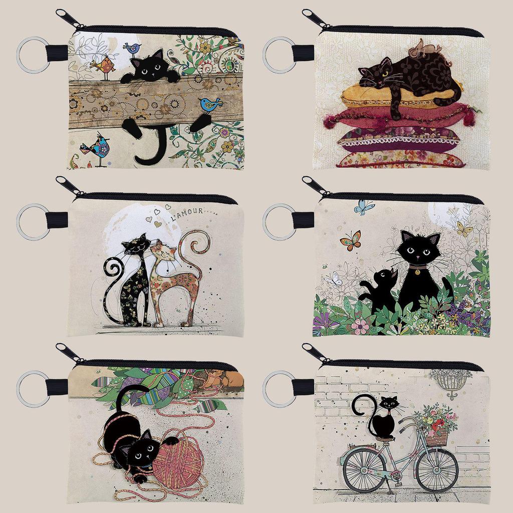 Adorable Cat Print Coin Purse & Keychain Gift for Girls & Women