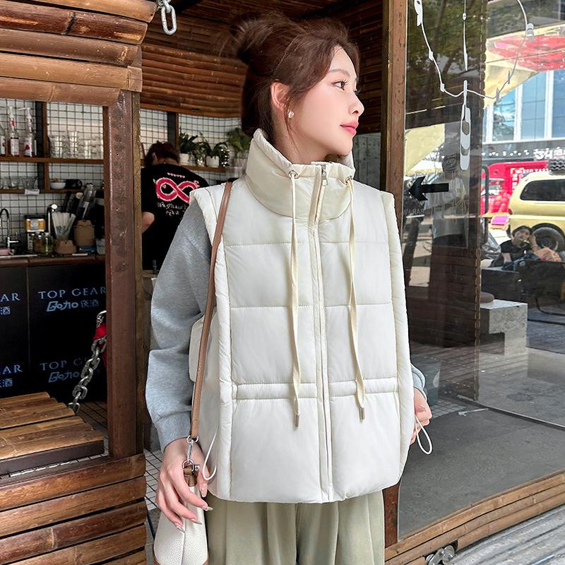 New Women's Lightweight Sleeveless Collar Stand-up Collar High-quality Jacket Solid Color Thickened Warm Sports and Leisure Loose Cotton Jacket