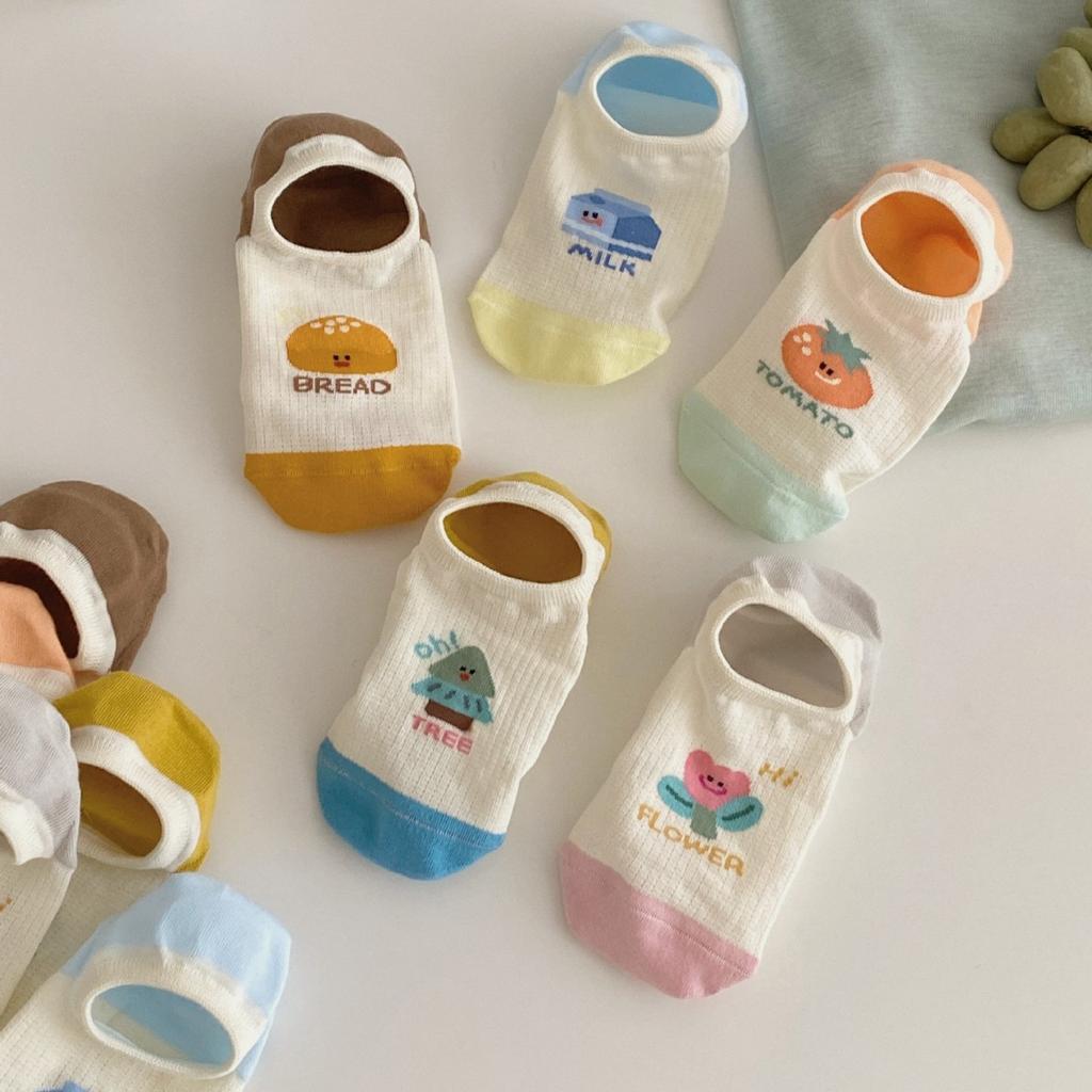 Dopamine Color-blocking Boat Socks, Thin Breathable Mesh Invisible Socks That Don't Fall Off, and Short Socks with Cartoon Patterns for Girls