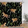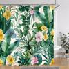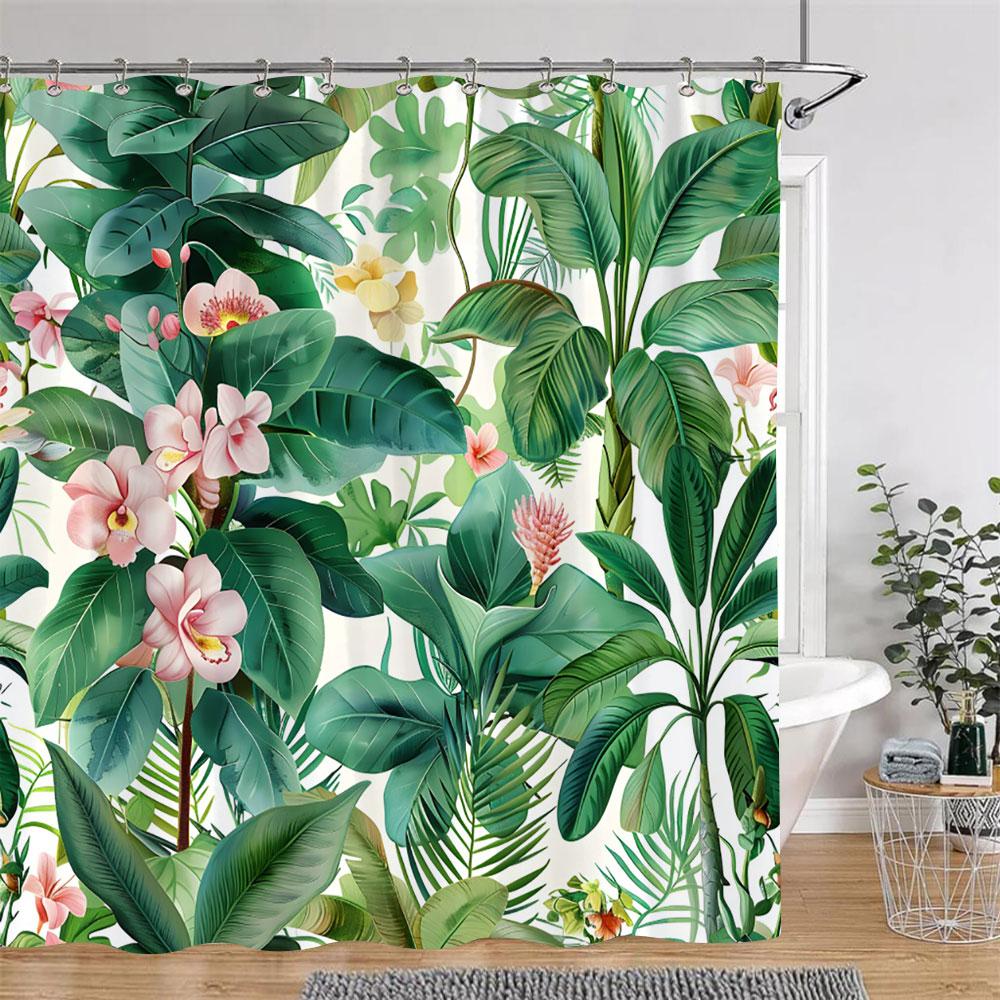 Tropical Plants Floral Shower Curtain Green Palm Leaves Pink Flowers Polyester Fabric Shower Curtains Bathroom Decor With Hooks