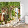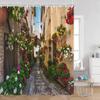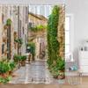 Vintage European Style Street View Shower Curtain Street View Old Stone Wall Plant Bathroom Curtain Bath Decoration