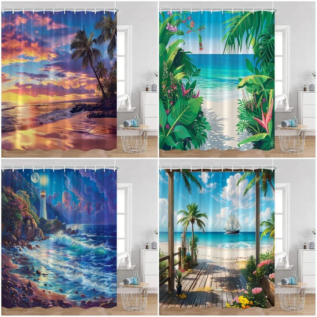 Summer Seaside Landscape Shower Curtain Coconut Tree Tropical Leaves Sea View Bathroom Decorative Polyester Shower Curtain