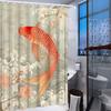 1 Piece Red Orange Koi and Sakura Shower Curtain-Flowing White Waves and Pink Flower Pattern, Polyester Fabric, Machine Washable