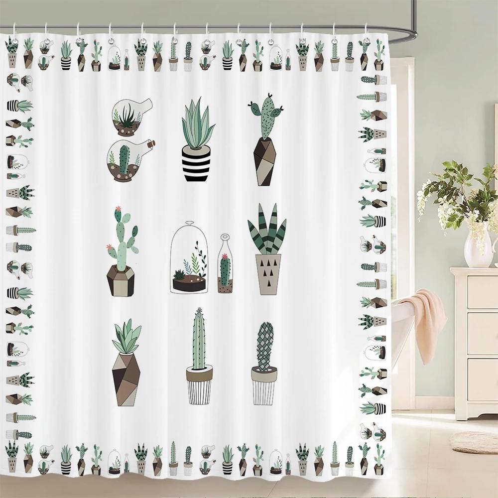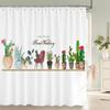 Tropical Plant Cactus Shower Curtain 180cm *180cm with Hooks, Floral Waterproof Shower Curtain, Shower Curtains for Bathroom