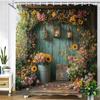 Beautiful Country Garden Flowers House Style Printed Fabric Shower Curtain Bathroom Curtain,home Decoration Curtain with Hooks