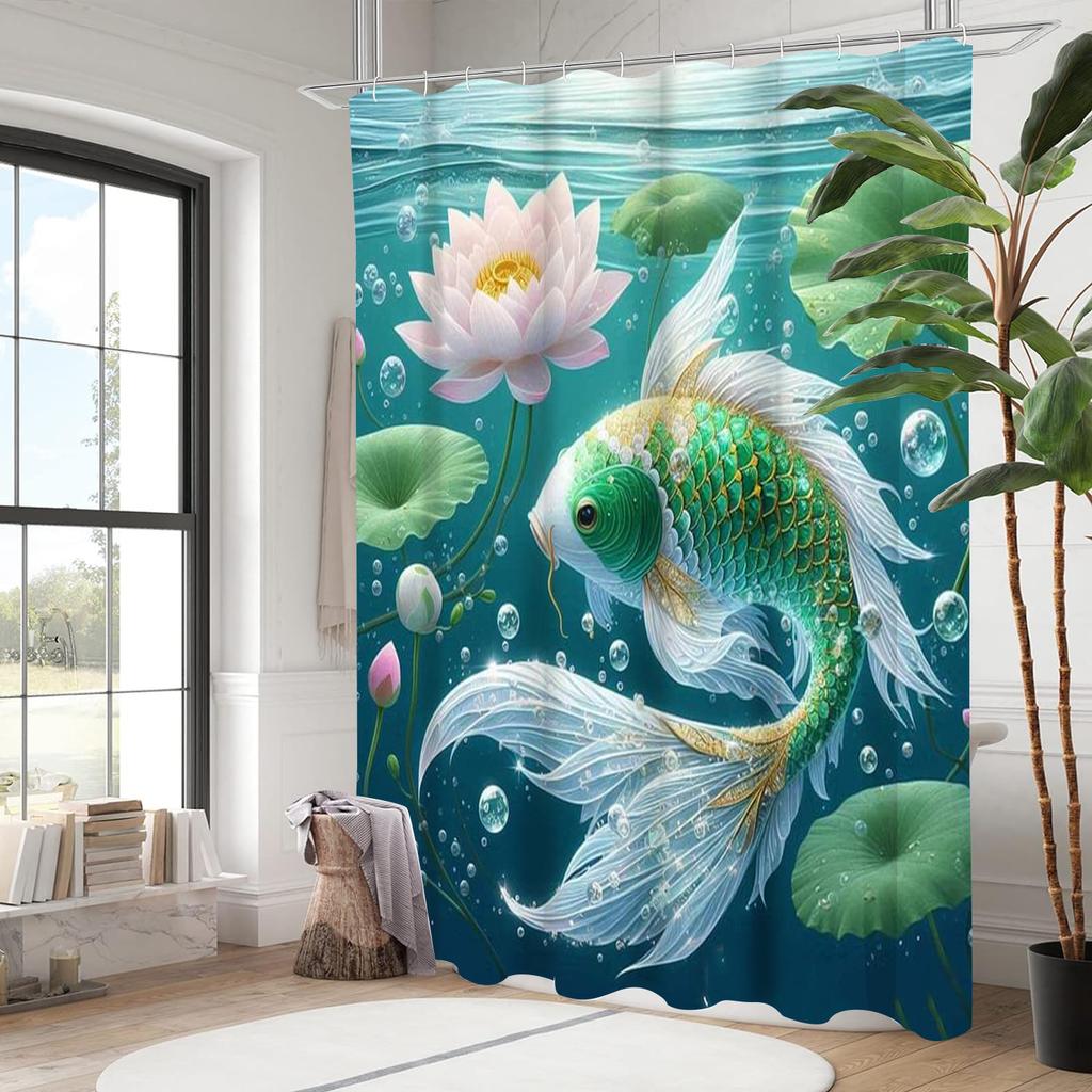 Lotus Fishes Pattern Bathing Curtain Bathroom Shower Curtain Waterproof With 12 Hooks Home Deco Free Ship
