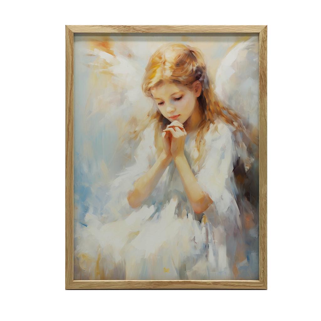 1x Charming Heavenly Guardian, 30x40 cm, light oak wooden frame, 230 gsm matte paper